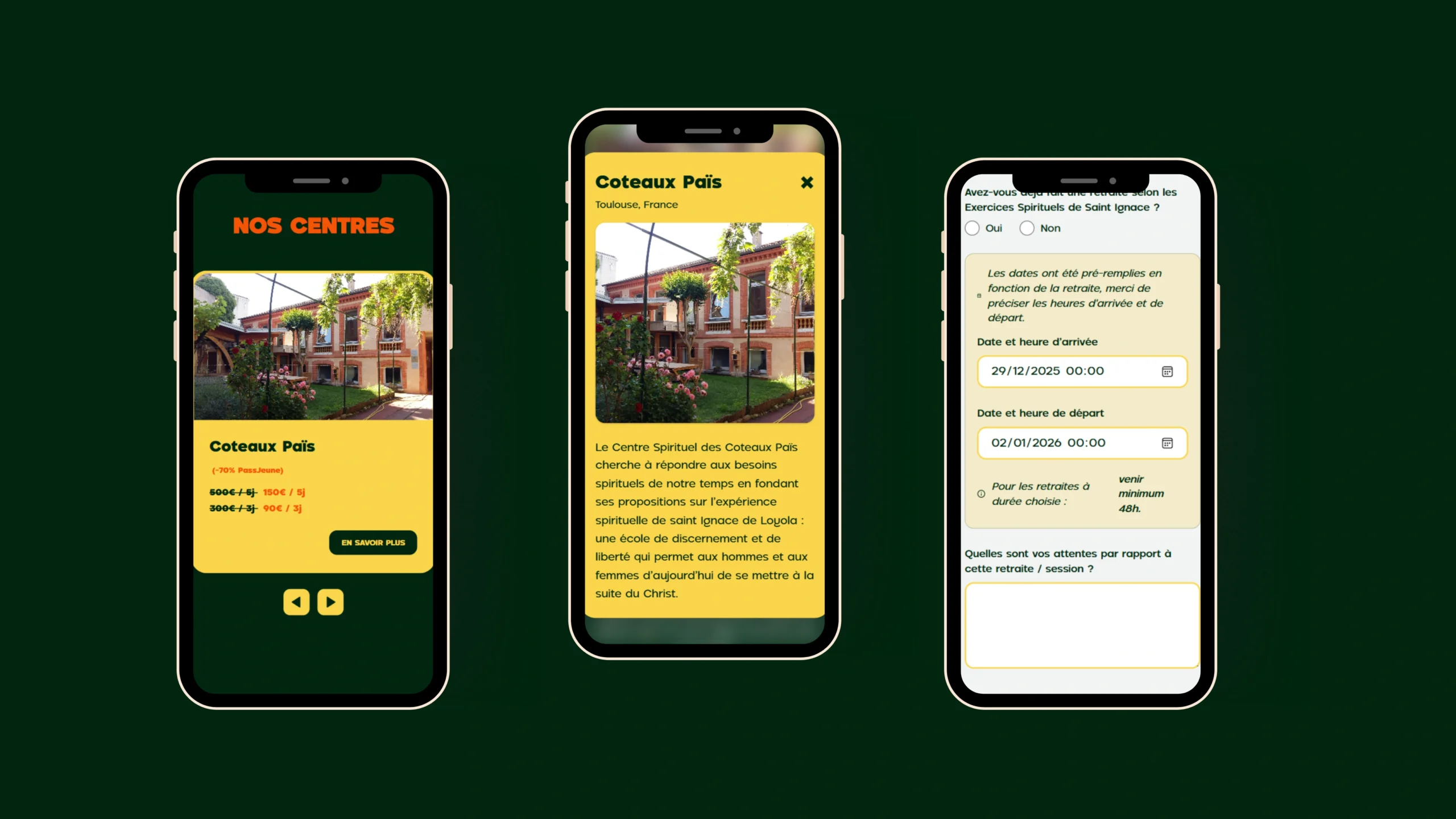 L’objectif principal de PASS Jeunes était de proposer un outil numérique simple, intuitif et accessible, permettant aux jeunes de s’inscrire facilement aux retraites ignatiennes. Il s’agissait également d’unifier les inscriptions au sein d’une plateforme unique, tout en offrant une expérience fluide, rassurante et cohérente avec les valeurs portées par les Jésuites.